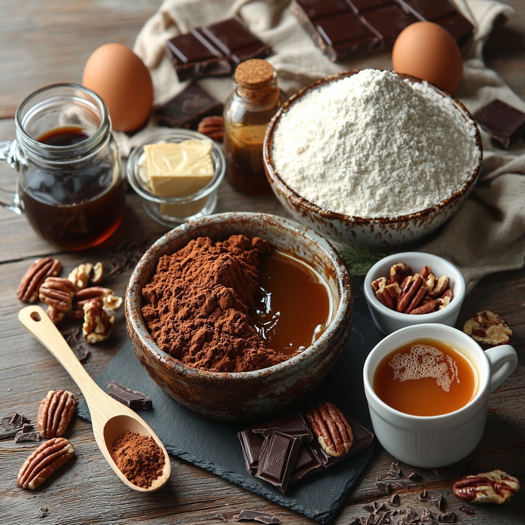 Getting this Chocolate Turtle Cake Recipe just right is all about using straightforward, accessible ingredients that come together to create a symphony of flavor and texture. Each one plays a key role, from the cocoa that brings deep chocolate richness to the toasted pecans that add a wonderful crunch.