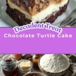 A decadent Chocolate Turtle Cake featuring rich chocolate cake layers, gooey caramel, and crunchy toasted pecans, topped with a smooth chocolate ganache frosting. This dessert combines the perfect balance of flavors and textures to delight any chocolate lover.