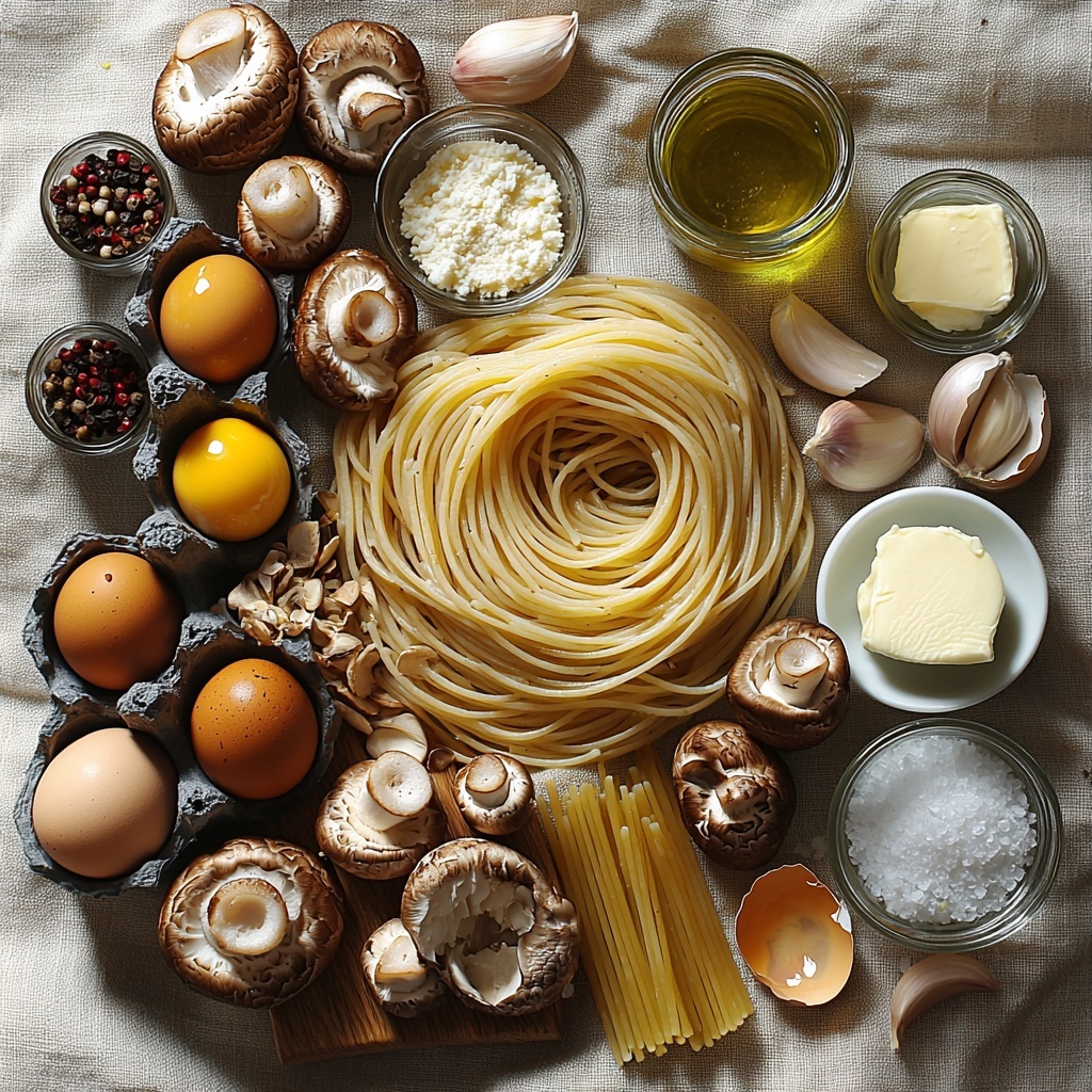 This Creamy Vegetarian Mushroom Carbonara Recipe boasts simplicity in its ingredients, each chosen for the essential role it plays in crafting the dish’s decadently smooth sauce, rich flavor, and inviting texture. From the mushrooms that add umami depth to the cheeses that bring that unmistakable tangy sharpness, these ingredients are all stars in their own right.