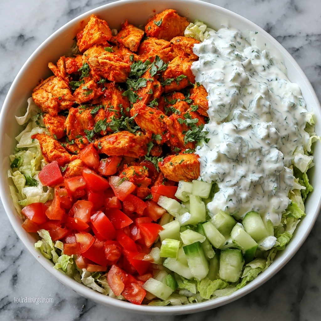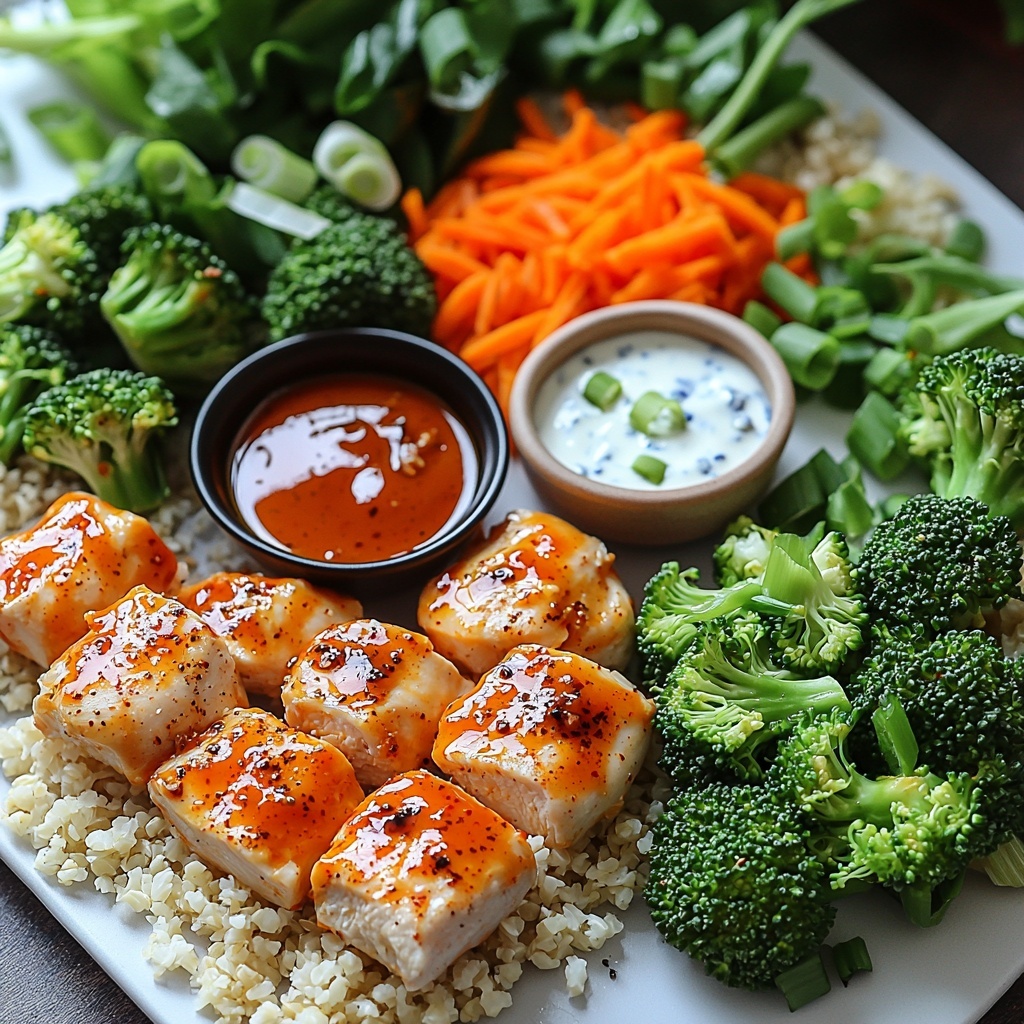 Adding garnishes like a drizzle of low-fat ranch or blue cheese dressing instantly takes your buffalo chicken bowls to the next level by adding creaminess that tames the heat. Fresh green onions are not only attractive but bring a mild, oniony freshness that balances the bold flavors beautifully. You can also add a squeeze of fresh lemon juice to brighten up the whole dish.