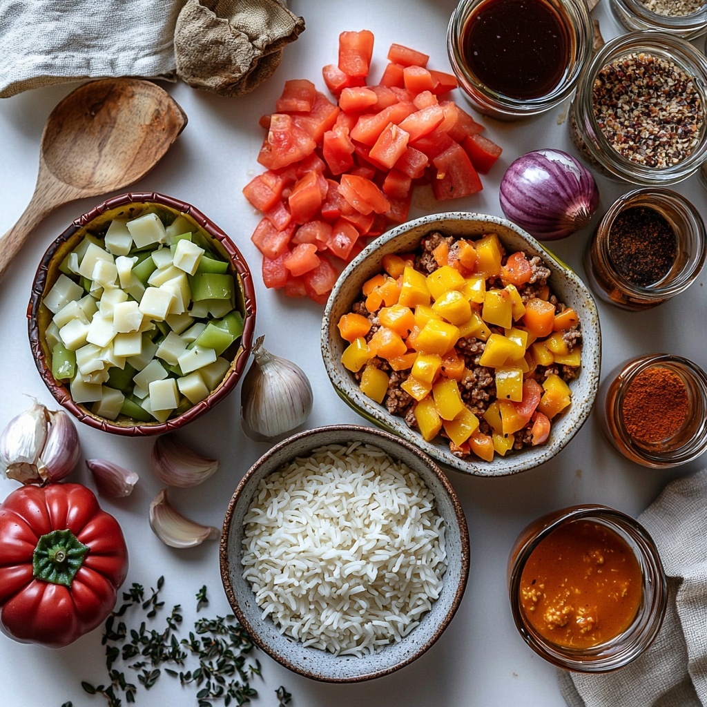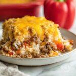 This Mouthwatering Stuffed Bell Pepper Casserole offers all the delicious flavors of classic stuffed peppers in a comforting, easy-to-make casserole form. Combining lean ground beef, diced bell peppers, onion, rice, and a medley of seasonings, everything is baked together with rich beef stock and topped with melted sharp cheddar cheese, creating a hearty, flavorful dish perfect for family dinners.