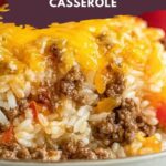 Now it’s time to bring in the beef stock, diced tomatoes with their juices, Worcestershire sauce, and rice. Stir well to combine all the ingredients. This mixture will simmer and allow the rice to absorb all the delicious flavors, swelling up tender and perfect. This is where the casserole begins to come together.
