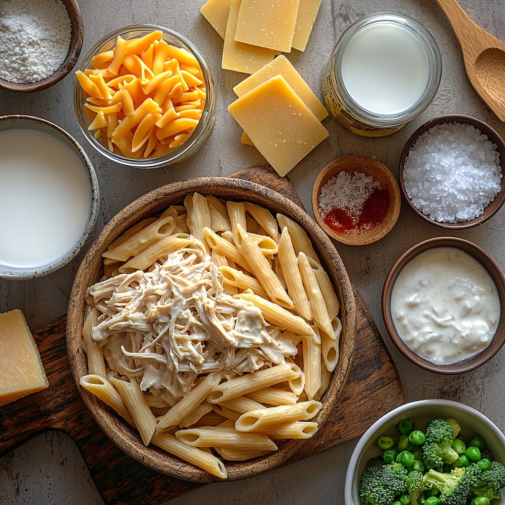 The beauty of this recipe lies in its simple yet essential ingredients, each carefully chosen to build layers of flavor, creaminess, and texture. From the pasta that forms the comforting base to the rich “million dollar” sauce that coats every bite, these ingredients come together seamlessly to create an irresistible dish.