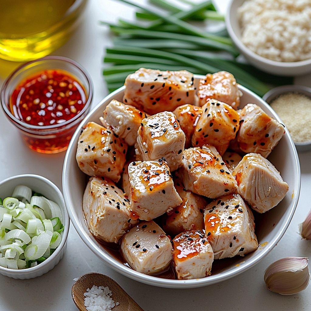 A quick and delicious Sweet Chili Chicken recipe ready in 30 minutes. Tender chicken pieces are coated in cornstarch, pan-fried to a crispy golden brown, and tossed in a flavorful sweet chili sauce with garlic and ginger. Garnished with green onions and sesame seeds, this dish pairs perfectly with rice or noodles for a satisfying meal.
